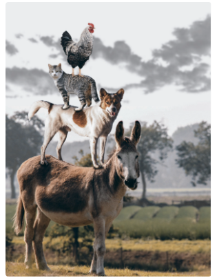 图中有一只猫,一只公鸡,一只狗,一头驴,背景是一些树。 取决于我们最终想用我们的模型做什么,将其视为简单分类问题可能没有多大意义。 取而代之,我们可能想让模型描绘输入图像的内容,一只猫、一只狗、一头驴,还有一只公鸡。