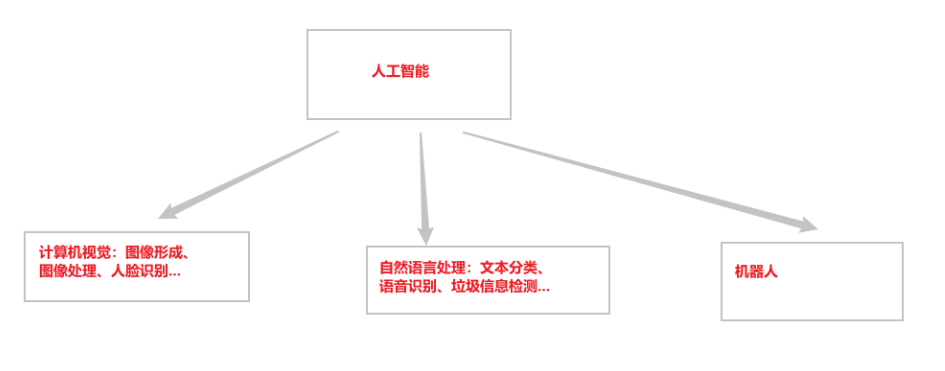 先简单介绍一下人工智能领域主要包含什么,人工智能领域可以简单分为以下三个部分,这三个部分又包含了许多小的方向,每个方向都是极具挑战的