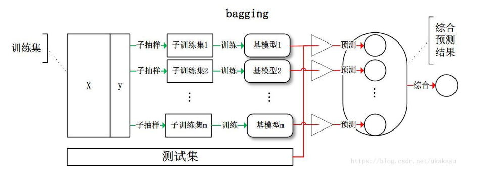 bagging的中文意义是训练多个分类器后取平均,较为严谨的解释是从训练集从进行子抽样组成每个基模型所需要的子训练集,对所有基模型预测的结果进行综合产生最终的预测结果