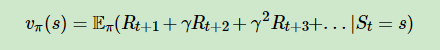 价值,常用vΠ(s)表示,是一个期望函数;该要素的意义在于针对奖励,只能代表此时的奖励较高但未知到了t+1、t+2…的奖励是否仍然高,因此需要综合考虑当前的延时奖励和后续的延时奖励,价值函数的表达式一般如下